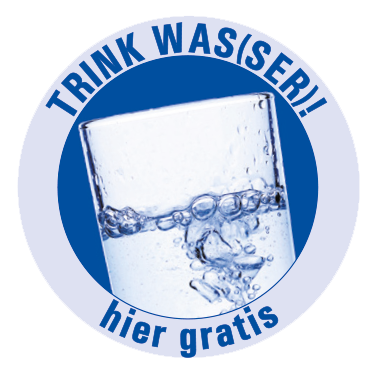 Wo Sie diesen Aufkleber sehen, können Sie sich kostenlos und unverbindlich erfrischen.